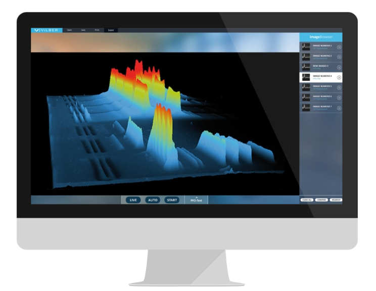 El equipo Quantum de Vilber es un sistema avanzado de documentación de geles, reconocido como el estándar de laboratorio para la obtención de imágenes de ADN y proteínas. Este equipo combina facilidad de uso con un rendimiento excepcional en la captura de imágenes, permitiendo obtener resultados de alta calidad con un solo clic.